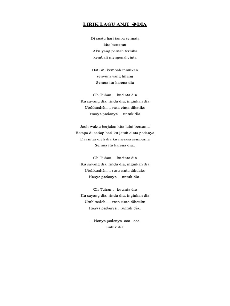 Dia yang ku rindu. Untuk dapat menikmati setiap lagu yang didengar sebaiknya kamu mengetahui liriknya secara tepat.